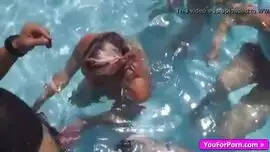 مجموعة شراميط هاجوا على الواد في حمام السباحة ونزلوا مص في زبه